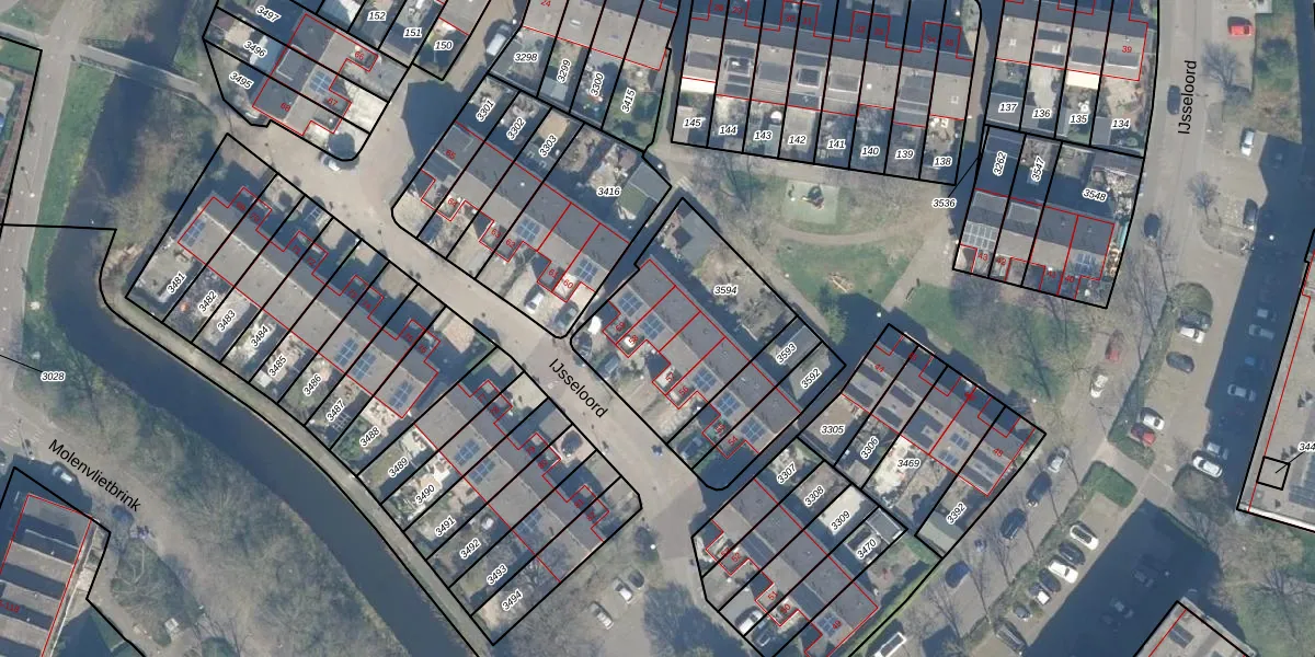 Het perceel waarop IJsseloord 58 staat heeft een oppervlakte van 637 m². Dit is een groot perceel. De perceeloppervlakte wordt geregistreerd door het Kadaster. Gedetailleerde informatie over de maten van dit perceel kunt u vinden in het rapport Kadastrale kaart met maatvoering van IJsseloord 58.