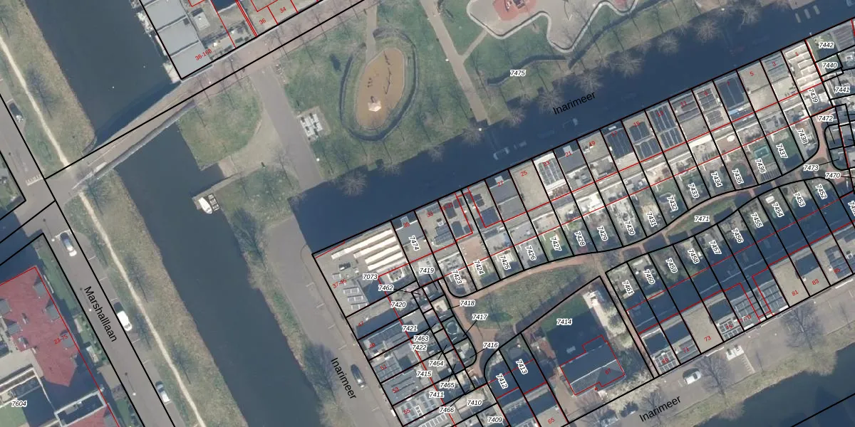 Inarimeer 33 is gelegen op kadastraal perceel WDN01A7423. Deze kadastrale aanduiding is uniek en wordt gebruikt door het Kadaster om eigendomsrechten en andere zakelijke rechten vast te leggen. Het perceel maakt onderdeel uit van de kadastrale gemeente Woerden.