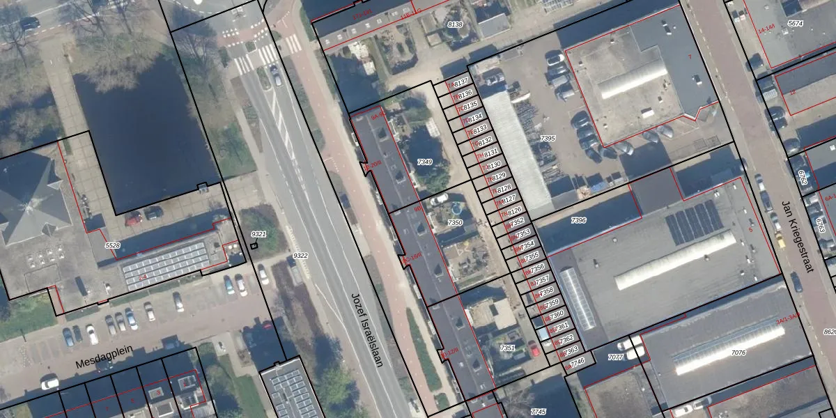 Het perceel waarop Jan Kriegestraat 9-B staat heeft een oppervlakte van 534 m². Dit is een groot perceel. De perceeloppervlakte wordt geregistreerd door het Kadaster. Gedetailleerde informatie over de maten van dit perceel kunt u vinden in het rapport Kadastrale kaart met maatvoering van Jan Kriegestraat 9-B.