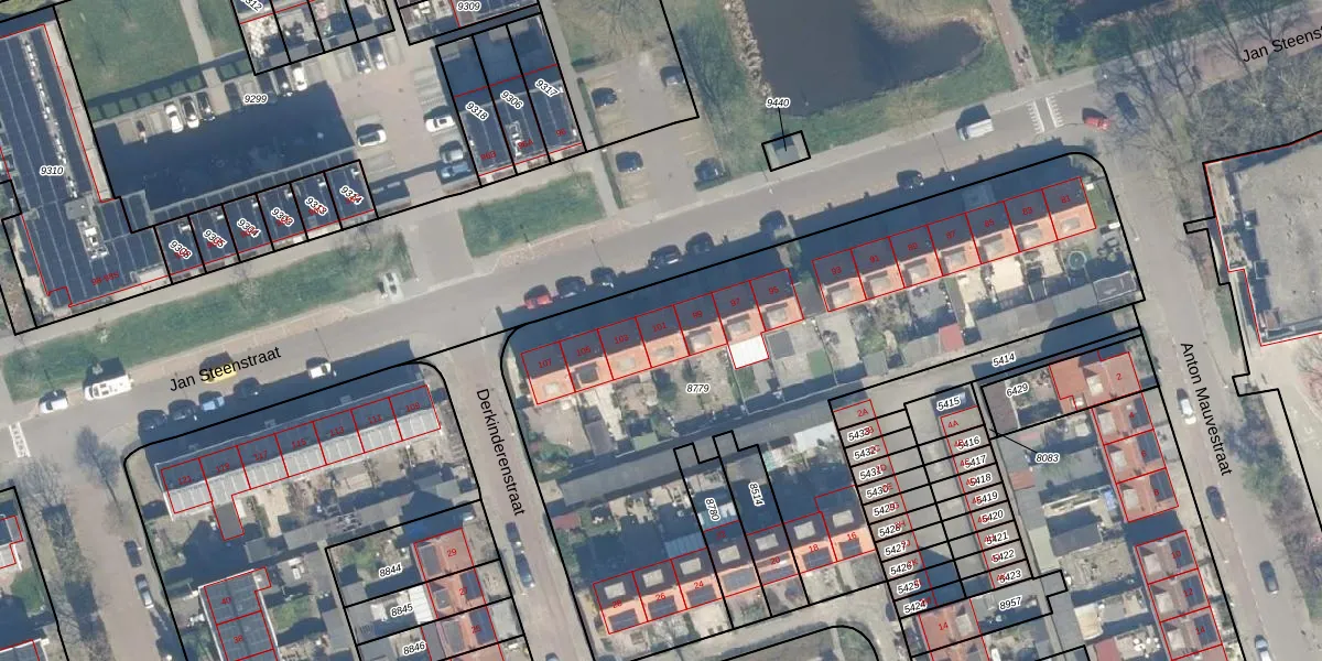 Jan Steenstraat 101 is gelegen op kadastraal perceel WDN01B8779. Deze kadastrale aanduiding is uniek en wordt gebruikt door het Kadaster om eigendomsrechten en andere zakelijke rechten vast te leggen. Het perceel maakt onderdeel uit van de kadastrale gemeente Woerden.