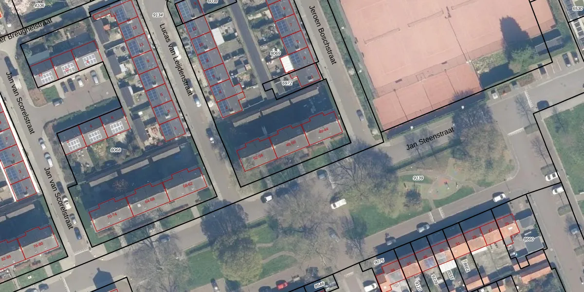 Het perceel waarop Jan Steenstraat 46 staat heeft een oppervlakte van 2490 m². Dit is een zeer groot perceel. De perceeloppervlakte wordt geregistreerd door het Kadaster. Gedetailleerde informatie over de maten van dit perceel kunt u vinden in het rapport Kadastrale kaart met maatvoering van Jan Steenstraat 46.