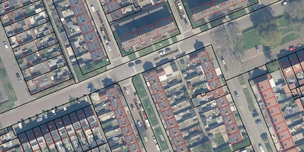 Het perceel waarop Jan Steenstraat 51 staat heeft een oppervlakte van 3303 m². Dit is een zeer groot perceel. De perceeloppervlakte wordt geregistreerd door het Kadaster. Gedetailleerde informatie over de maten van dit perceel kunt u vinden in het rapport Kadastrale kaart met maatvoering van Jan Steenstraat 51.