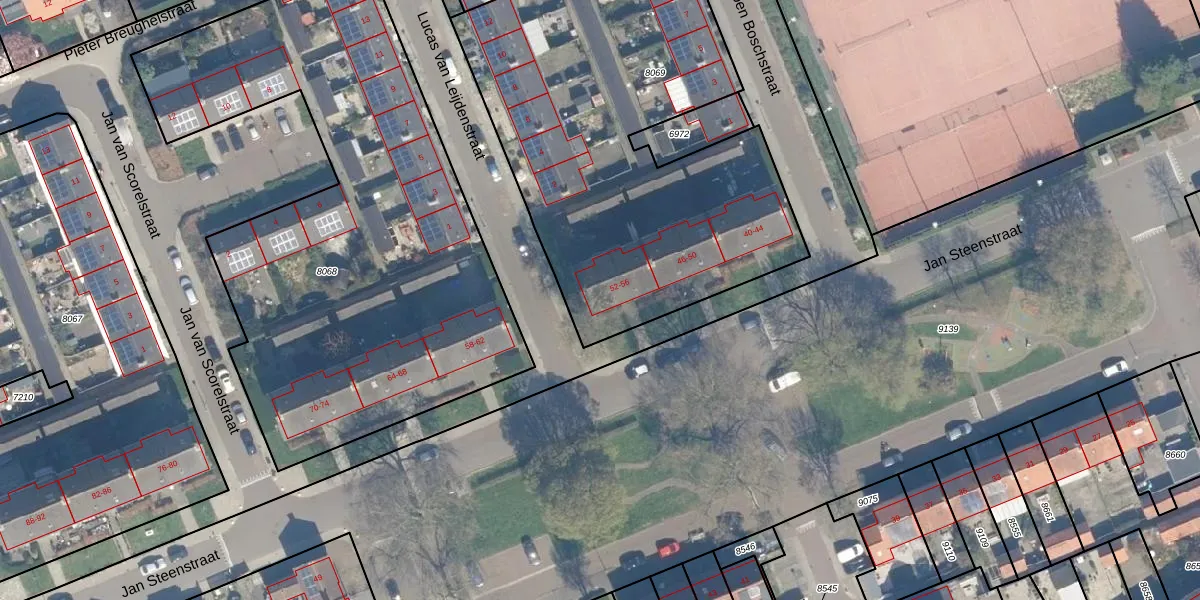 Het perceel waarop Jan Steenstraat 56 staat heeft een oppervlakte van 2490 m². Dit is een zeer groot perceel. De perceeloppervlakte wordt geregistreerd door het Kadaster. Gedetailleerde informatie over de maten van dit perceel kunt u vinden in het rapport Kadastrale kaart met maatvoering van Jan Steenstraat 56.