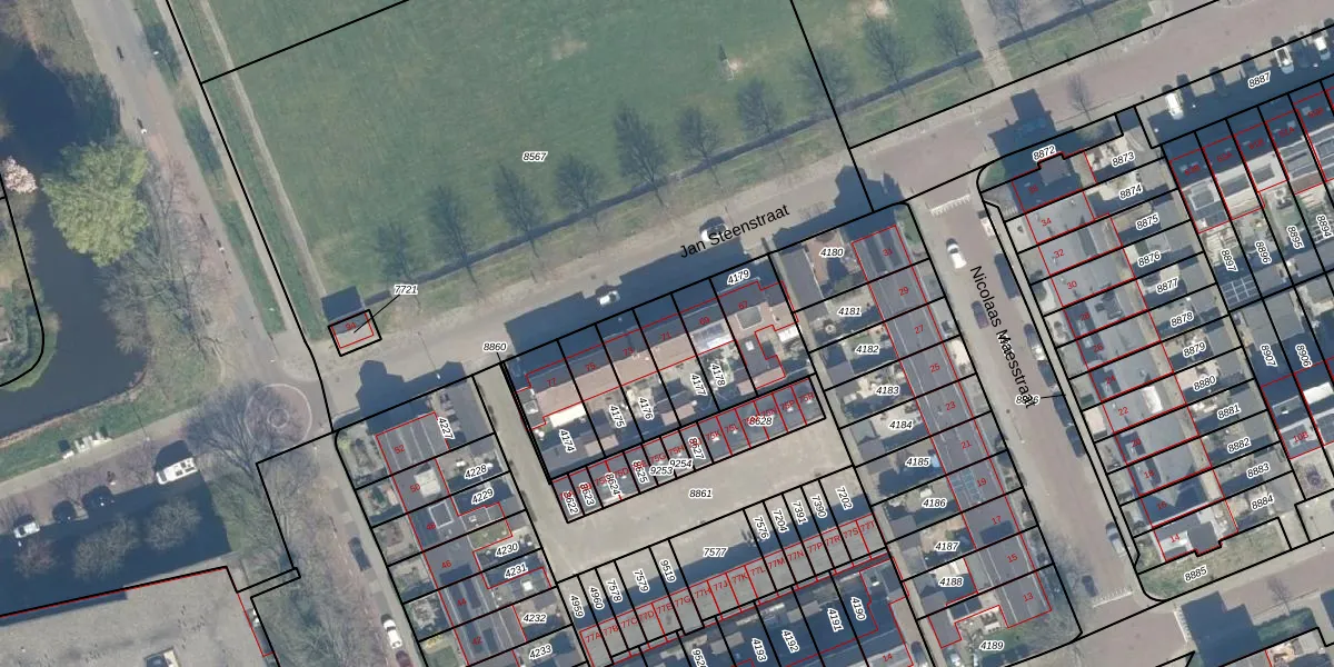 Gebruik de zoekbalk of klik op een perceel voor informatie over de adressen binnen dit perceel.
