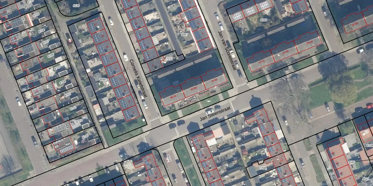 Het perceel waarop Jan Steenstraat 86 staat heeft een oppervlakte van 2685 m². Dit is een zeer groot perceel. De perceeloppervlakte wordt geregistreerd door het Kadaster. Gedetailleerde informatie over de maten van dit perceel kunt u vinden in het rapport Kadastrale kaart met maatvoering van Jan Steenstraat 86.