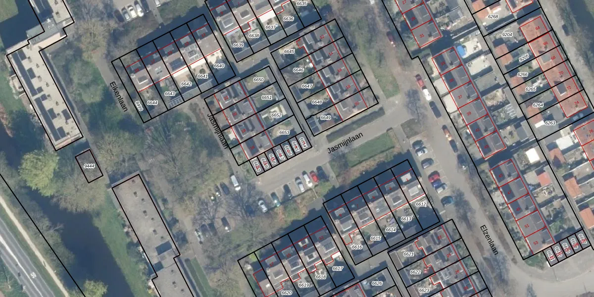Gebruik de zoekbalk of klik op een perceel voor informatie over de adressen binnen dit perceel.