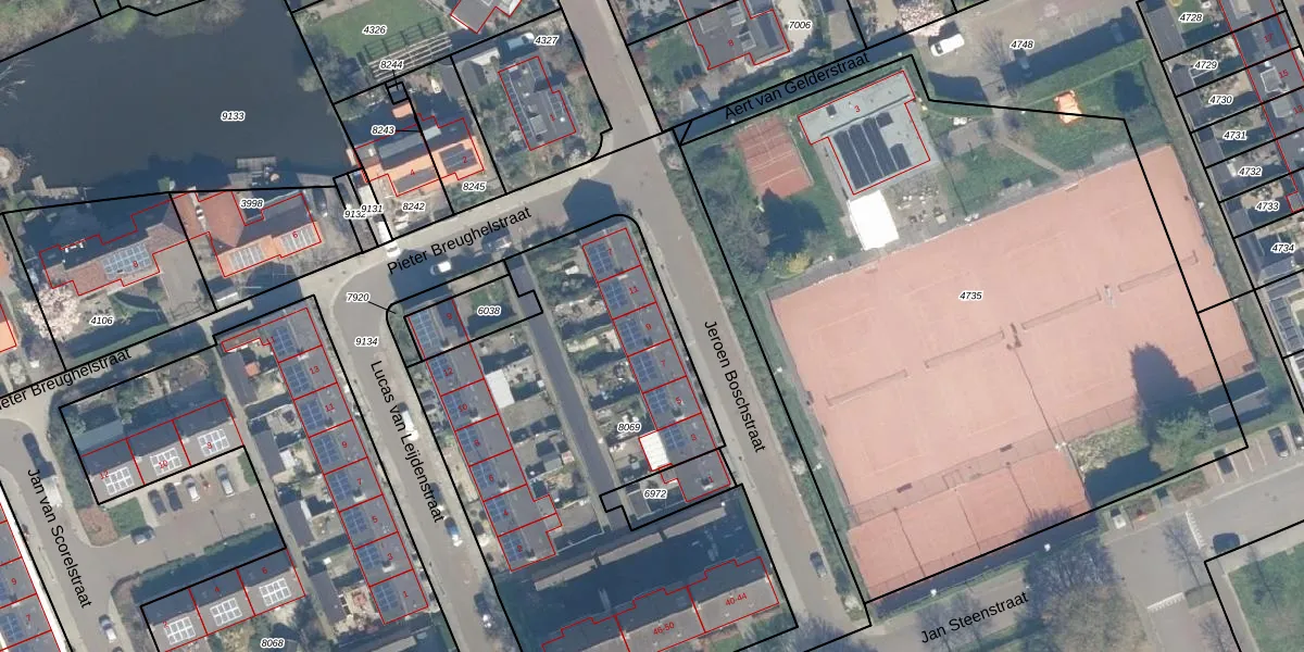 Het perceel waarop Jeroen Boschstraat 9 staat heeft een oppervlakte van 2490 m². Dit is een zeer groot perceel. De perceeloppervlakte wordt geregistreerd door het Kadaster. Gedetailleerde informatie over de maten van dit perceel kunt u vinden in het rapport Kadastrale kaart met maatvoering van Jeroen Boschstraat 9.