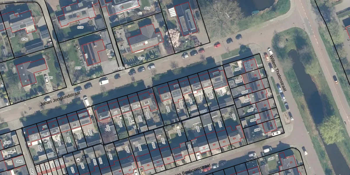 Gebruik de zoekbalk of klik op een perceel voor informatie over de adressen binnen dit perceel.