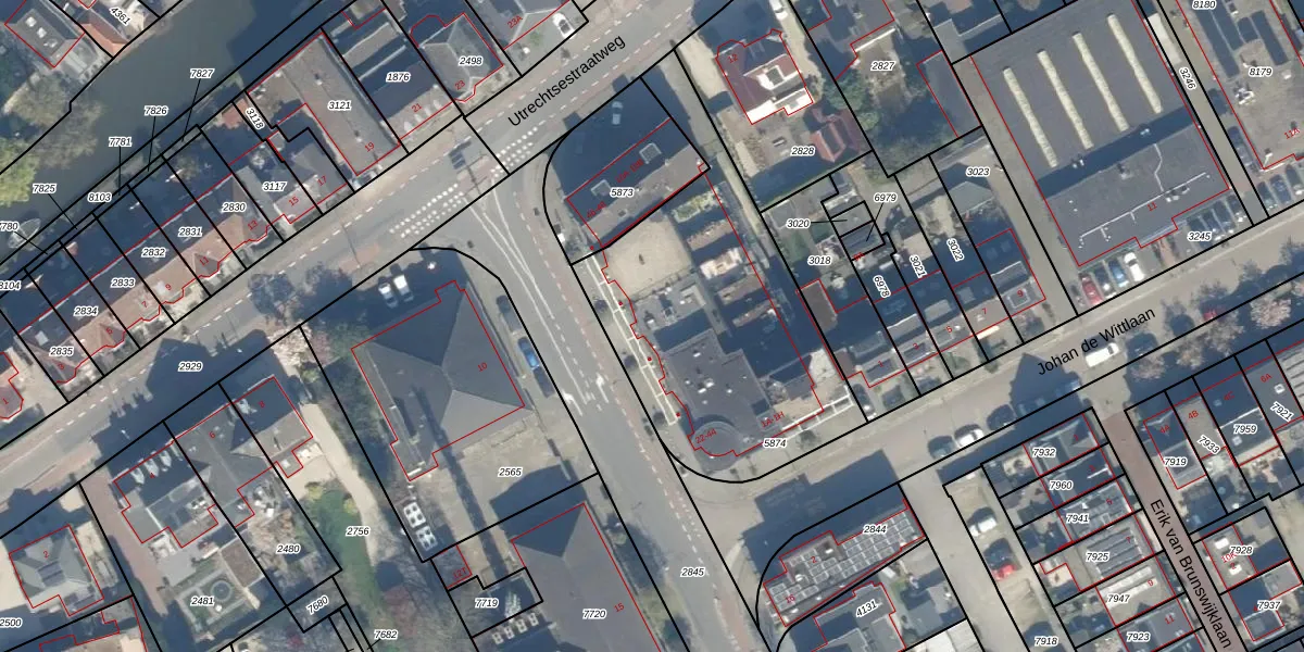 Het adres is gelegen op perceel 5874 in de sectie A en de kadastrale gemeente Woerden. De kadastrale aanduiding is aldus WDN01-A-5874. Het perceel is met 1341 m² relatief groot. Het gemiddelde ligt in de kadastrale gemeente Woerden op 1325,81 m². Het grootste perceel in de kadastrale gemeente is 55,0 ha. Het kleinste perceel heeft een oppervlakte van 0 m². Op het perceel zijn 19 adressen aanwezig. De huidige grenzen van het perceel zijn digitaal in de Basisregistratie Kadaster (BRK) geregistreerd op 16-12-1999.