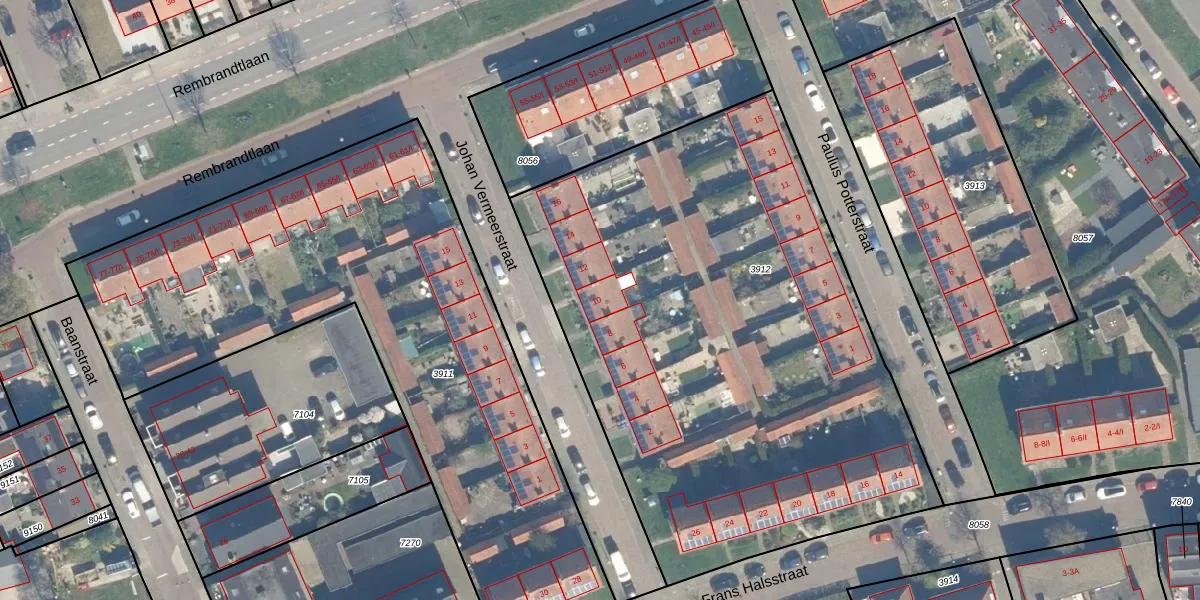 Johan Vermeerstraat 10 is gelegen op kadastraal perceel WDN01B3912. Deze kadastrale aanduiding is uniek en wordt gebruikt door het Kadaster om eigendomsrechten en andere zakelijke rechten vast te leggen. Het perceel maakt onderdeel uit van de kadastrale gemeente Woerden.