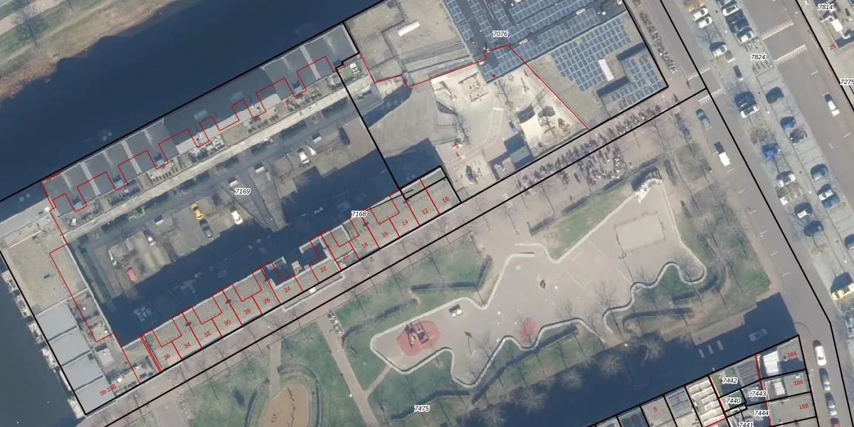 Het adres is gelegen op perceel 7169 in de sectie A en de kadastrale gemeente Woerden. De kadastrale aanduiding is aldus WDN01-A-7169. De gemiddelde perceeloppervlakte in de kadastrale gemeente Woerden is 1326,34 m². Dit perceel is met zijn 4814 m² dus groter dan gemiddeld. Het kleinste perceel in de kadastrale gemeente is 0 m² groot. De grootste perceeloppervlakte is 55,0 ha. Er zijn 87 adressen aanwezig op het perceel. In de Basisregistratie Kadaster (BRK) werden de grenzen van het perceel geregistreerd op 07-05-2008.