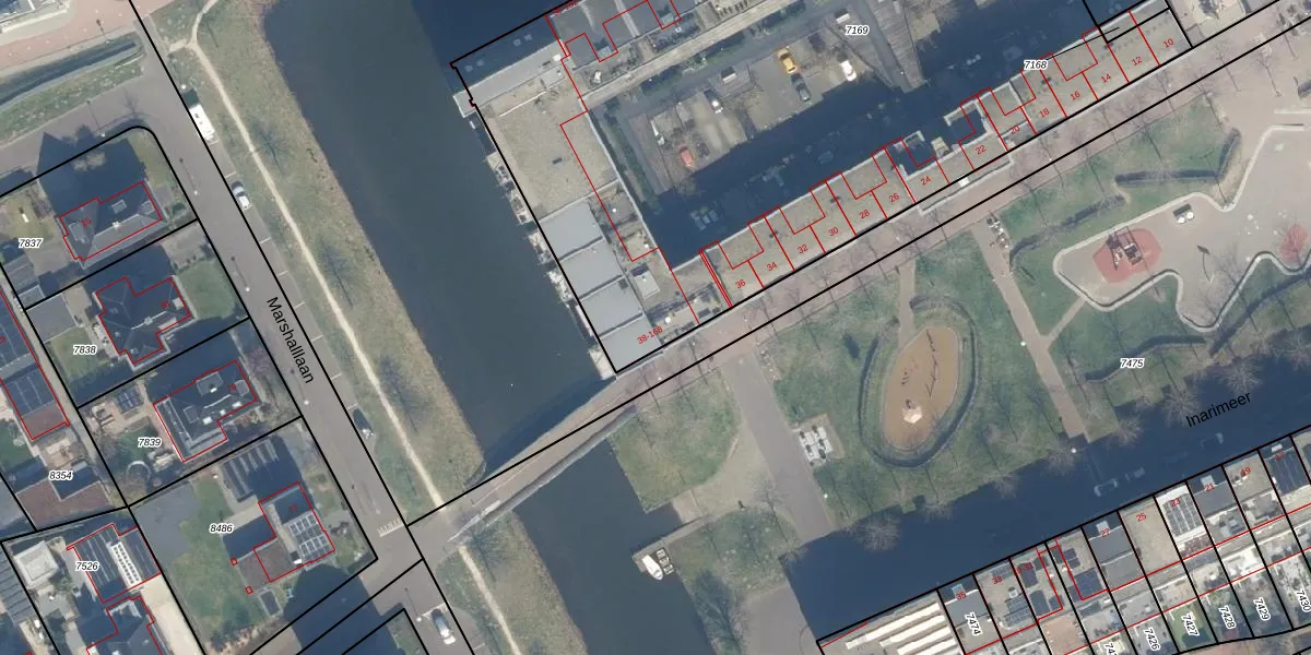 Het adres is gelegen op perceel 7169 in de sectie A en de kadastrale gemeente Woerden. De kadastrale aanduiding is aldus WDN01-A-7169. De gemiddelde perceeloppervlakte in de kadastrale gemeente Woerden is 1326,34 m². Dit perceel is met zijn 4814 m² dus groter dan gemiddeld. De grootste perceeloppervlakte in de kadastrale gemeente is 55,0 ha. De kleinste oppervlakte bedraagt 0 m². Op het perceel liggen in totaal 87 adressen. De huidige grenzen van het perceel zijn digitaal in de Basisregistratie Kadaster (BRK) geregistreerd op 07-05-2008.