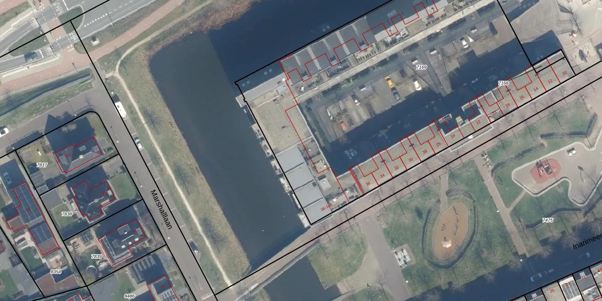 Het adres is gelegen op perceel 7169 in de sectie A en de kadastrale gemeente Woerden. De kadastrale aanduiding is aldus WDN01-A-7169. De gemiddelde perceeloppervlakte in de kadastrale gemeente Woerden is 1326,34 m². Dit perceel is met zijn 4814 m² dus groter dan gemiddeld. De grootste perceeloppervlakte in de kadastrale gemeente is 55,0 ha. De kleinste oppervlakte bedraagt 0 m². Op het perceel liggen in totaal 87 adressen. De huidige grenzen van het perceel zijn digitaal in de Basisregistratie Kadaster (BRK) geregistreerd op 07-05-2008.