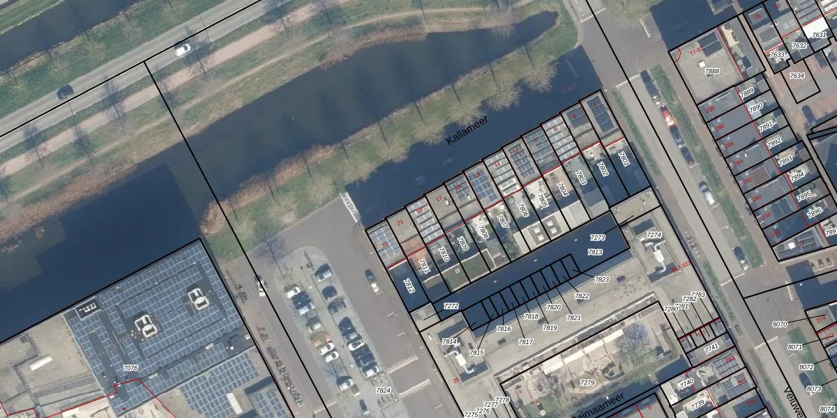 Kallameer 19 is gelegen op kadastraal perceel WDN01A7810. Deze kadastrale aanduiding is uniek en wordt gebruikt door het Kadaster om eigendomsrechten en andere zakelijke rechten vast te leggen. Het perceel maakt onderdeel uit van de kadastrale gemeente Woerden.
