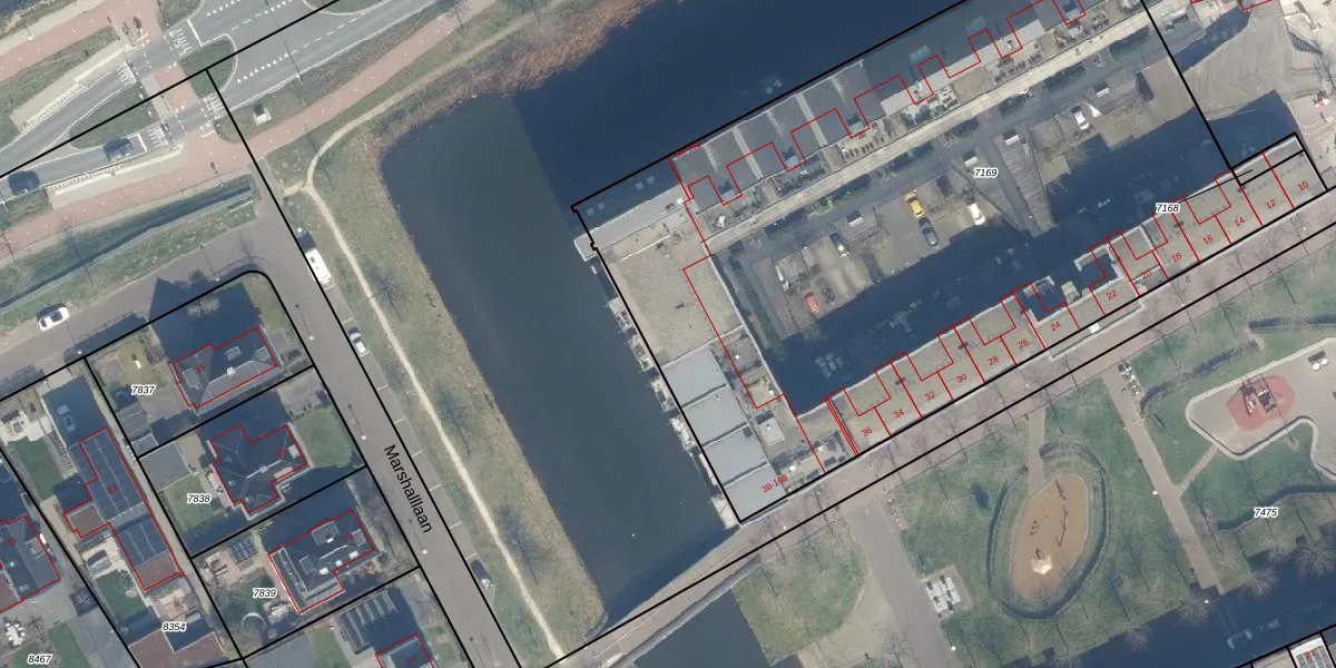 Het adres is gelegen op perceel 7169 in de sectie A en de kadastrale gemeente Woerden. De kadastrale aanduiding is aldus WDN01-A-7169. De gemiddelde perceeloppervlakte in de kadastrale gemeente Woerden is 1326,34 m². Dit perceel is met zijn 4814 m² dus groter dan gemiddeld. De grootste perceeloppervlakte in de kadastrale gemeente is 55,0 ha. De kleinste oppervlakte bedraagt 0 m². Op het perceel liggen in totaal 87 adressen. In de Basisregistratie Kadaster (BRK) werden de grenzen van het perceel geregistreerd op 07-05-2008.