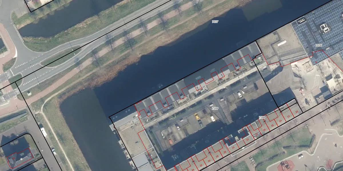 Het adres is gelegen op perceel 7169 in de sectie A en de kadastrale gemeente Woerden. De kadastrale aanduiding is aldus WDN01-A-7169. De gemiddelde perceeloppervlakte in de kadastrale gemeente Woerden is 1326,34 m². Dit perceel is met zijn 4814 m² dus groter dan gemiddeld. De grootste perceeloppervlakte in de kadastrale gemeente is 55,0 ha. De kleinste oppervlakte bedraagt 0 m². Er zijn 87 adressen aanwezig op het perceel. De huidige grenzen van het perceel zijn digitaal in de Basisregistratie Kadaster (BRK) geregistreerd op 07-05-2008.