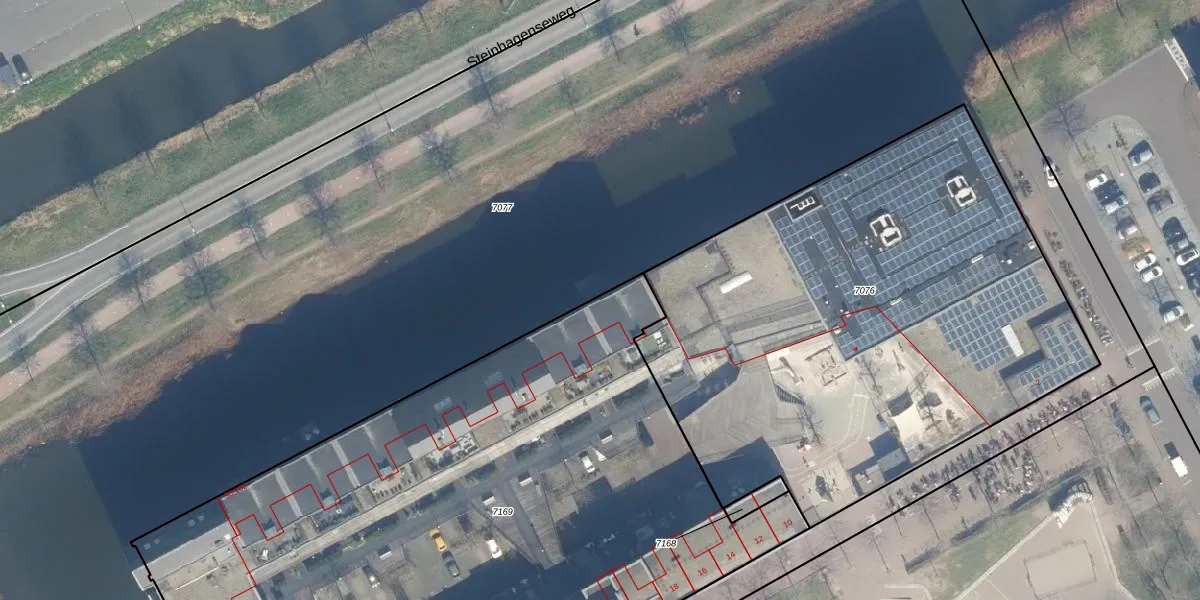 Het adres is gelegen op perceel 7169 in de sectie A en de kadastrale gemeente Woerden. De kadastrale aanduiding is aldus WDN01-A-7169. De gemiddelde perceeloppervlakte in de kadastrale gemeente Woerden is 1326,34 m². Dit perceel is met zijn 4814 m² dus groter dan gemiddeld. De grootste perceeloppervlakte in de kadastrale gemeente is 55,0 ha. De kleinste oppervlakte bedraagt 0 m². Op het perceel zijn 87 adressen aanwezig. In de Basisregistratie Kadaster (BRK) werden de grenzen van het perceel geregistreerd op 07-05-2008.