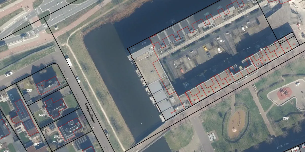 Het adres is gelegen op perceel 7169 in de sectie A en de kadastrale gemeente Woerden. De kadastrale aanduiding is aldus WDN01-A-7169. De gemiddelde perceeloppervlakte in de kadastrale gemeente Woerden is 1326,34 m². Dit perceel is met zijn 4814 m² dus groter dan gemiddeld. De grootste perceeloppervlakte in de kadastrale gemeente is 55,0 ha. De kleinste oppervlakte bedraagt 0 m². Op het perceel liggen in totaal 87 adressen. De huidige grenzen van het perceel zijn digitaal in de Basisregistratie Kadaster (BRK) geregistreerd op 07-05-2008.