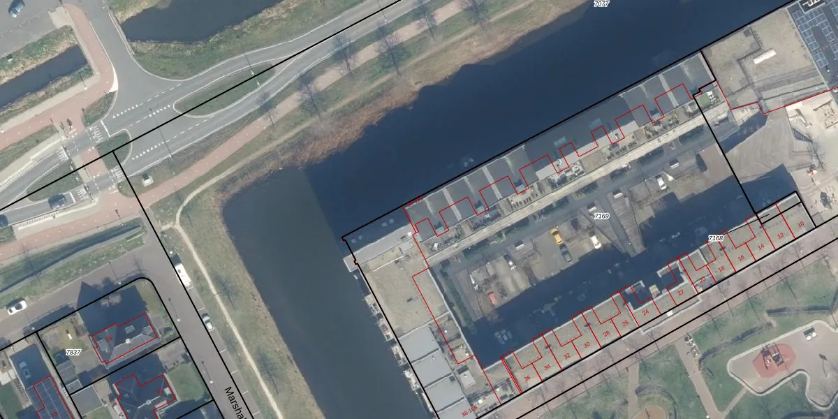 Het adres is gelegen op perceel 7169 in de sectie A en de kadastrale gemeente Woerden. De kadastrale aanduiding is aldus WDN01-A-7169. De gemiddelde perceeloppervlakte in de kadastrale gemeente Woerden is 1326,34 m². Dit perceel is met zijn 4814 m² dus groter dan gemiddeld. Het kleinste perceel in de kadastrale gemeente is 0 m² groot. De grootste perceeloppervlakte is 55,0 ha. Op het perceel zijn 87 adressen aanwezig. De huidige grenzen van het perceel zijn digitaal in de Basisregistratie Kadaster (BRK) geregistreerd op 07-05-2008.