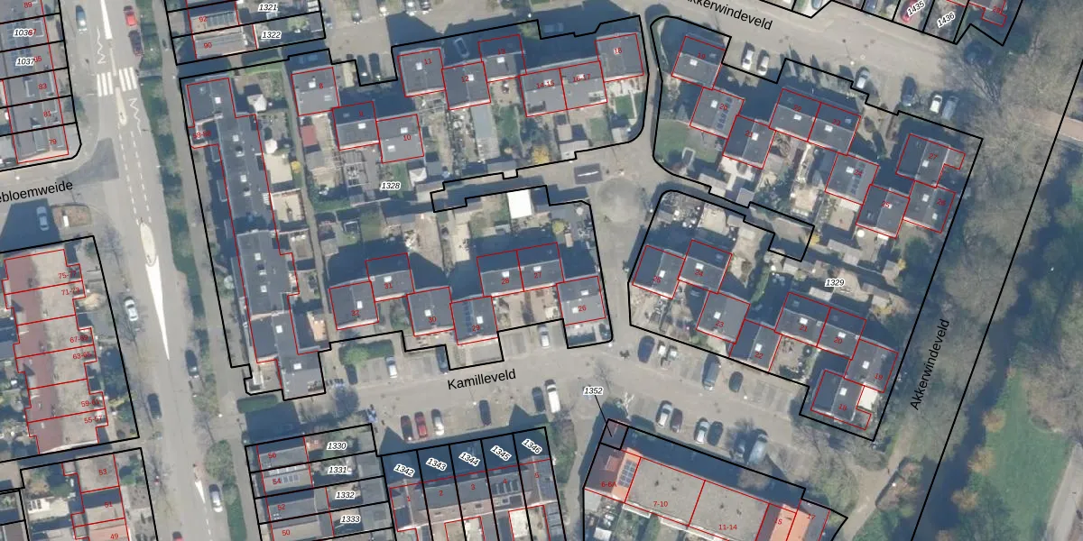 Kamilleveld 27 is gelegen op kadastraal perceel WDN01D1328. Deze kadastrale aanduiding is uniek en wordt gebruikt door het Kadaster om eigendomsrechten en andere zakelijke rechten vast te leggen. Het perceel maakt onderdeel uit van de kadastrale gemeente Woerden.