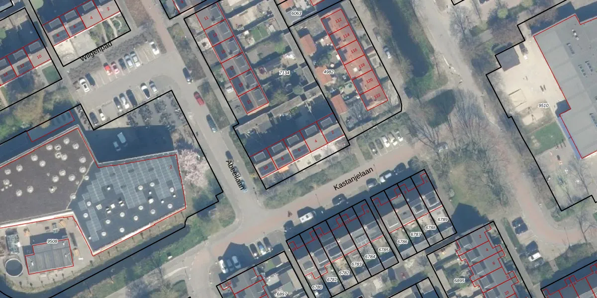 Kastanjelaan 6 is gelegen op kadastraal perceel WDN01B7134. Deze kadastrale aanduiding is uniek en wordt gebruikt door het Kadaster om eigendomsrechten en andere zakelijke rechten vast te leggen. Het perceel maakt onderdeel uit van de kadastrale gemeente Woerden.