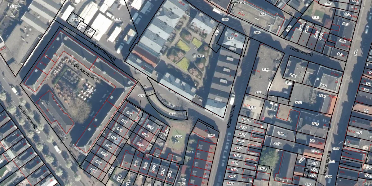 Kazernestraat 15 is gelegen op kadastraal perceel WDN01C3196. Deze kadastrale aanduiding is uniek en wordt gebruikt door het Kadaster om eigendomsrechten en andere zakelijke rechten vast te leggen. Het perceel maakt onderdeel uit van de kadastrale gemeente Woerden.