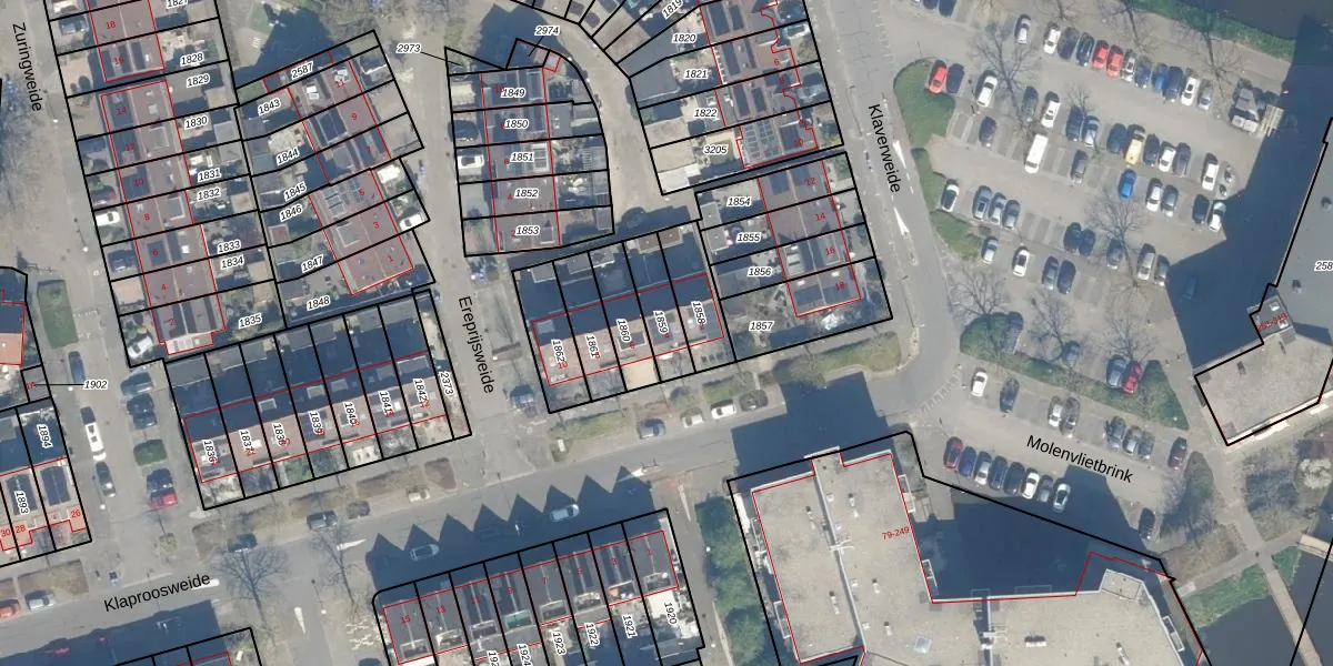 Gebruik de zoekbalk of klik op een perceel voor informatie over de adressen binnen dit perceel.