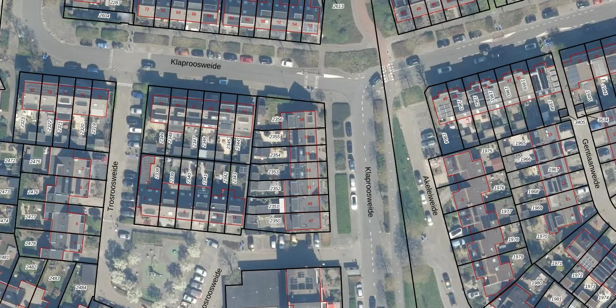 Klaproosweide 55 is gelegen op kadastraal perceel WDN01D2354. Deze kadastrale aanduiding is uniek en wordt gebruikt door het Kadaster om eigendomsrechten en andere zakelijke rechten vast te leggen. Het perceel maakt onderdeel uit van de kadastrale gemeente Woerden.