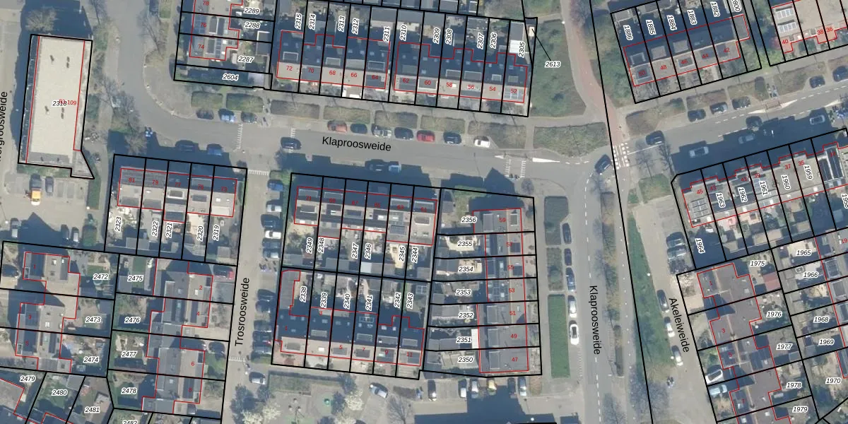 Gebruik de zoekbalk of klik op een perceel voor informatie over de adressen binnen dit perceel.