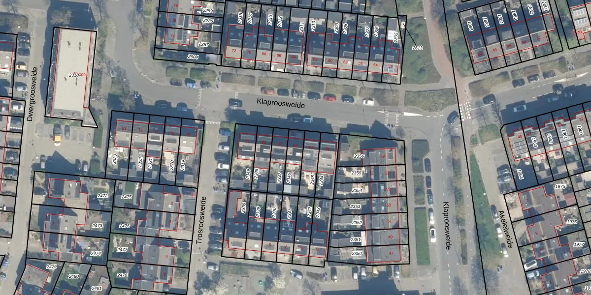 Klaproosweide 65 is gelegen op kadastraal perceel WDN01D2346. Deze kadastrale aanduiding is uniek en wordt gebruikt door het Kadaster om eigendomsrechten en andere zakelijke rechten vast te leggen. Het perceel maakt onderdeel uit van de kadastrale gemeente Woerden.