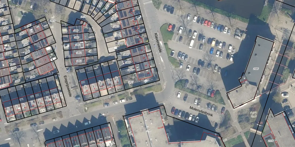 Klaverweide 18 is gelegen op kadastraal perceel WDN01D1857. Deze kadastrale aanduiding is uniek en wordt gebruikt door het Kadaster om eigendomsrechten en andere zakelijke rechten vast te leggen. Het perceel maakt onderdeel uit van de kadastrale gemeente Woerden.