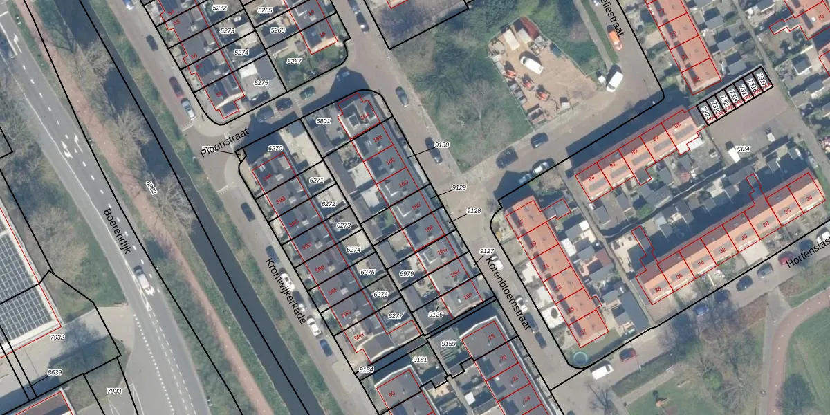 Het adres ligt op het perceel WDN01-B-9129, dat zich in de kadastrale gemeente Woerden bevindt. Het perceel is 120 m² groot. Dat is kleiner dan de gemiddelde perceeloppervlakte in Woerden, dat op 1326,34 m² ligt. Het kleinste perceel in de kadastrale gemeente is 0 m² groot. De grootste perceeloppervlakte is 55,0 ha. Dit is het enige adres dat aanwezig is op het perceel. De huidige grenzen van het perceel zijn digitaal in de Basisregistratie Kadaster (BRK) geregistreerd op 30-06-2014.