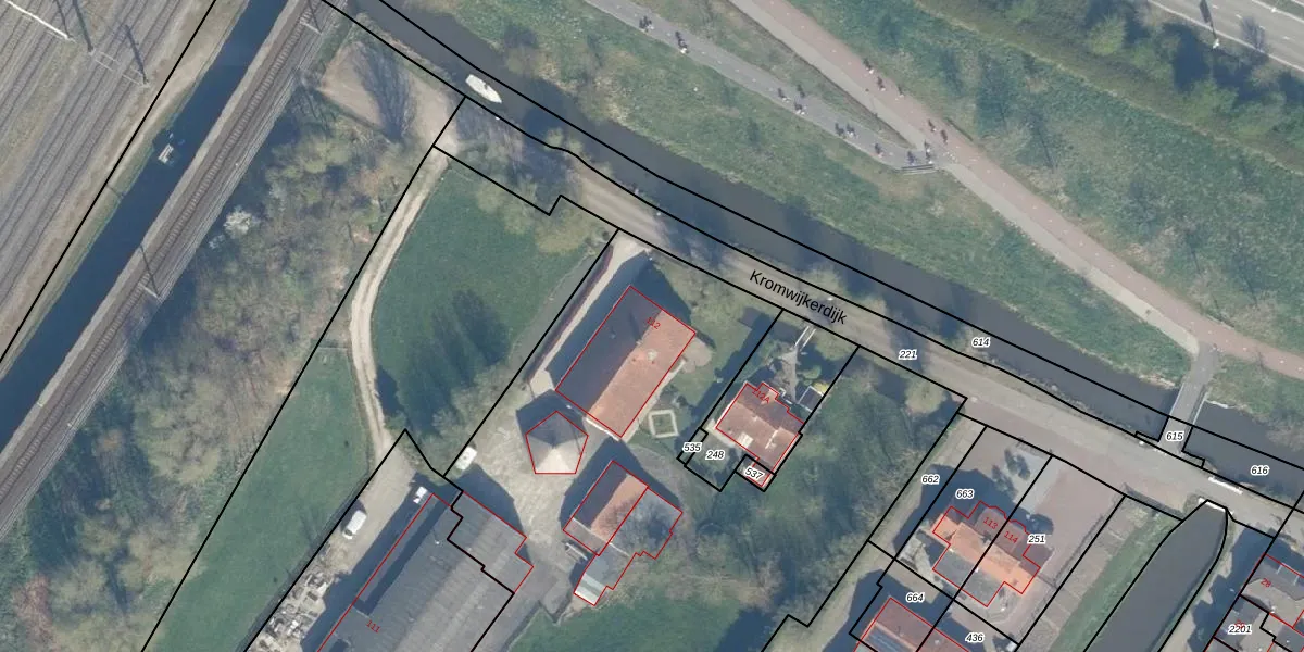 Het perceel waarop Kromwijkerdijk 112 staat heeft een oppervlakte van 1,2 ha. Dit is een zeer groot perceel. De perceeloppervlakte wordt geregistreerd door het Kadaster. Gedetailleerde informatie over de maten van dit perceel kunt u vinden in het rapport Kadastrale kaart met maatvoering van Kromwijkerdijk 112.