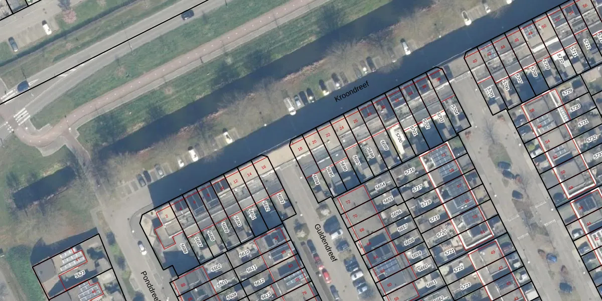 Kroondreef 18 is gelegen op kadastraal perceel WDN01A5694. Deze kadastrale aanduiding is uniek en wordt gebruikt door het Kadaster om eigendomsrechten en andere zakelijke rechten vast te leggen. Het perceel maakt onderdeel uit van de kadastrale gemeente Woerden.