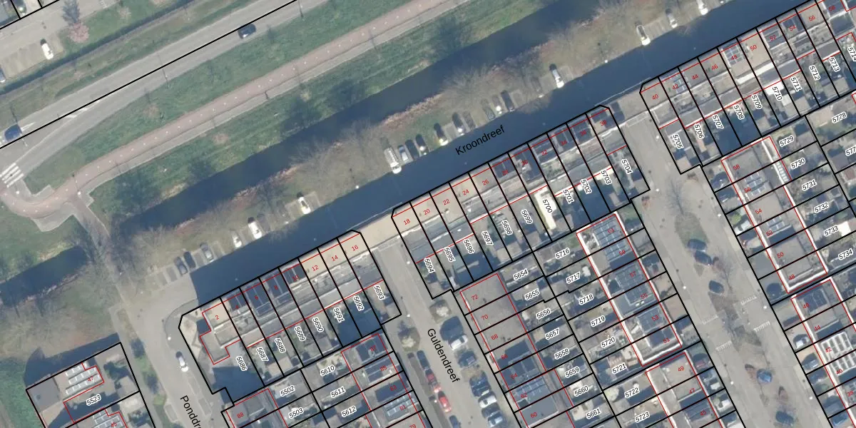 Gebruik de zoekbalk of klik op een perceel voor informatie over de adressen binnen dit perceel.