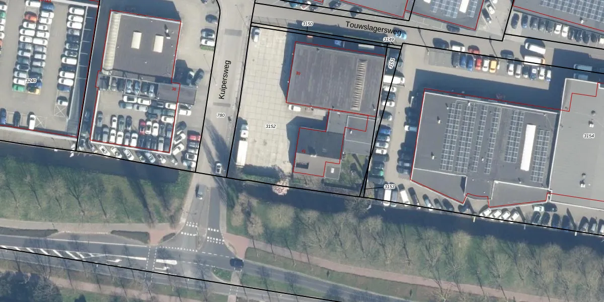 Kuipersweg 41 is gelegen op kadastraal perceel WDN01D3152. Deze kadastrale aanduiding is uniek en wordt gebruikt door het Kadaster om eigendomsrechten en andere zakelijke rechten vast te leggen. Het perceel maakt onderdeel uit van de kadastrale gemeente Woerden.