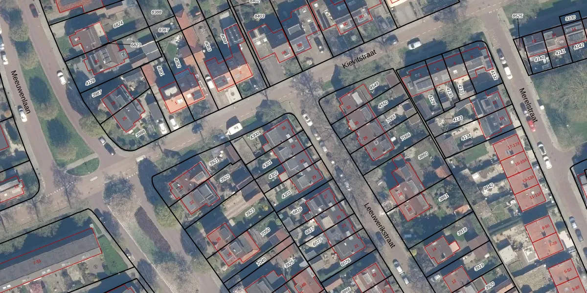 Het perceel waarop Leeuwerikstraat 33 staat heeft een oppervlakte van 136 m². Dit is een middelgroot perceel. De perceeloppervlakte wordt geregistreerd door het Kadaster. Gedetailleerde informatie over de maten van dit perceel kunt u vinden in het rapport Kadastrale kaart met maatvoering van Leeuwerikstraat 33.