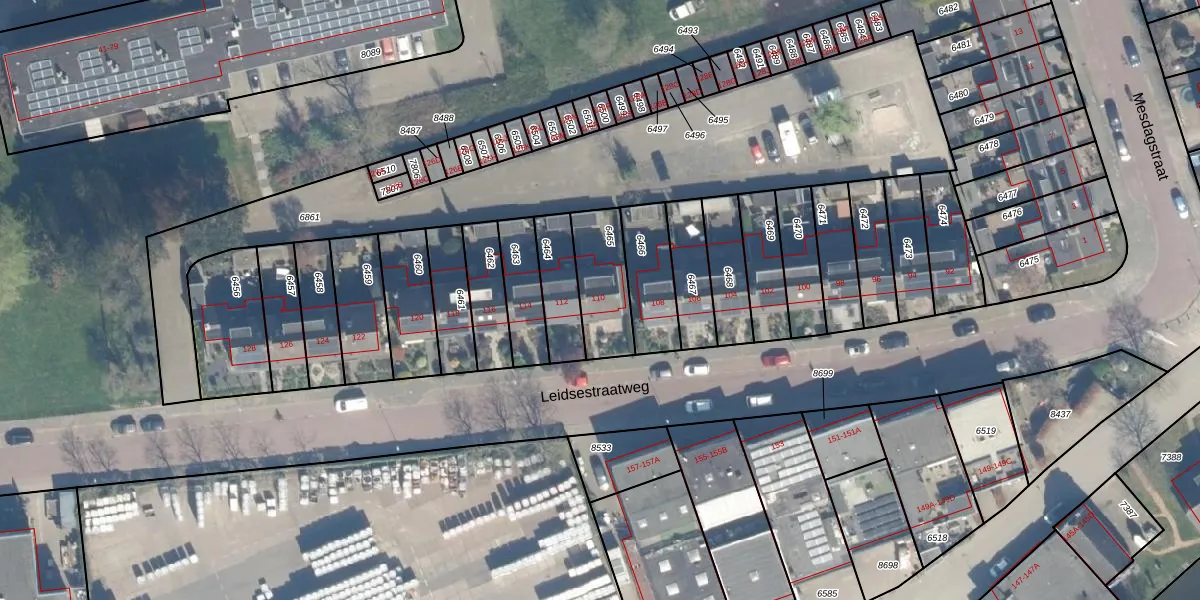 Gebruik de zoekbalk of klik op een perceel voor informatie over de adressen binnen dit perceel.