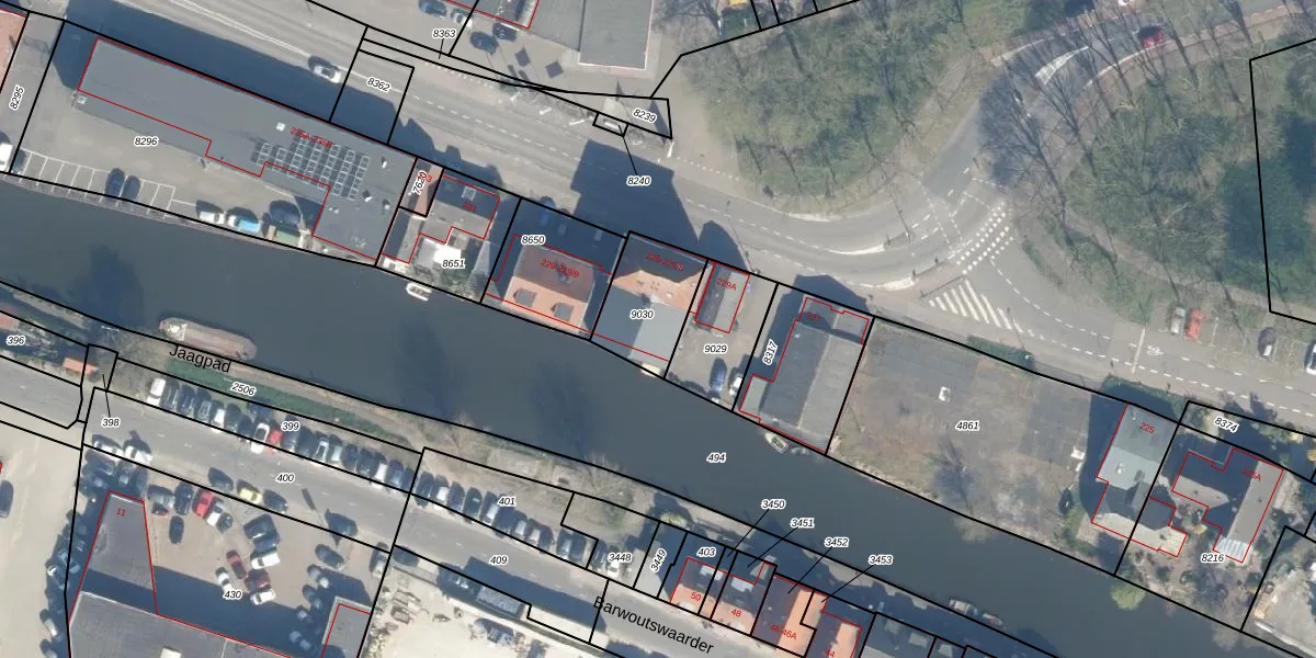 Het adres ligt op het perceel WDN01-B-9030, dat zich in de kadastrale gemeente Woerden bevindt. De gemiddelde perceelgrootte in Woerden is 1325,81 m². Dit perceel is kleiner: de perceeloppervlakte bedraagt 235 m². Het kleinste perceel in de kadastrale gemeente is 0 m² groot. De grootste perceeloppervlakte is 55,0 ha. Op het perceel zijn 8 adressen aanwezig. De huidige grenzen van het perceel zijn digitaal in de Basisregistratie Kadaster (BRK) geregistreerd op 28-12-2012.