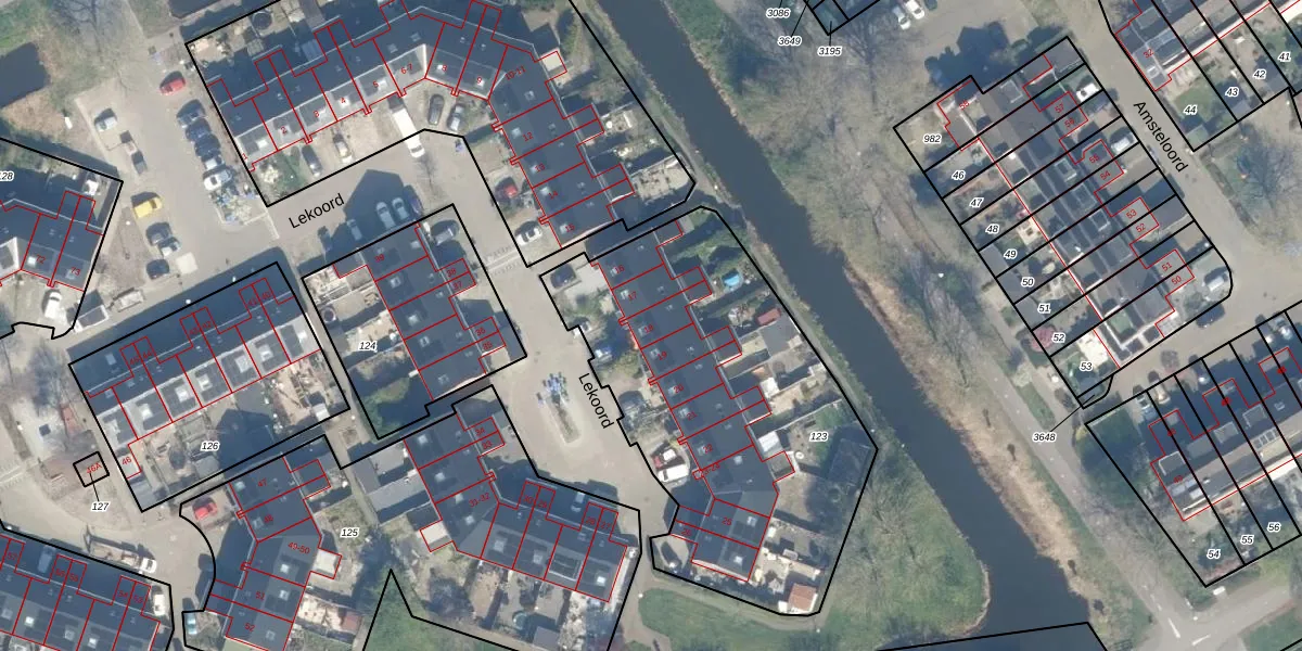 Het perceel waarop Lekoord 18 staat heeft een oppervlakte van 1745 m². Dit is een zeer groot perceel. De perceeloppervlakte wordt geregistreerd door het Kadaster. Gedetailleerde informatie over de maten van dit perceel kunt u vinden in het rapport Kadastrale kaart met maatvoering van Lekoord 18.