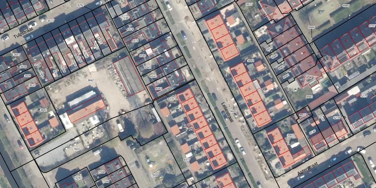 Leliestraat 36 is gelegen op kadastraal perceel WDN01B8377. Deze kadastrale aanduiding is uniek en wordt gebruikt door het Kadaster om eigendomsrechten en andere zakelijke rechten vast te leggen. Het perceel maakt onderdeel uit van de kadastrale gemeente Woerden.
