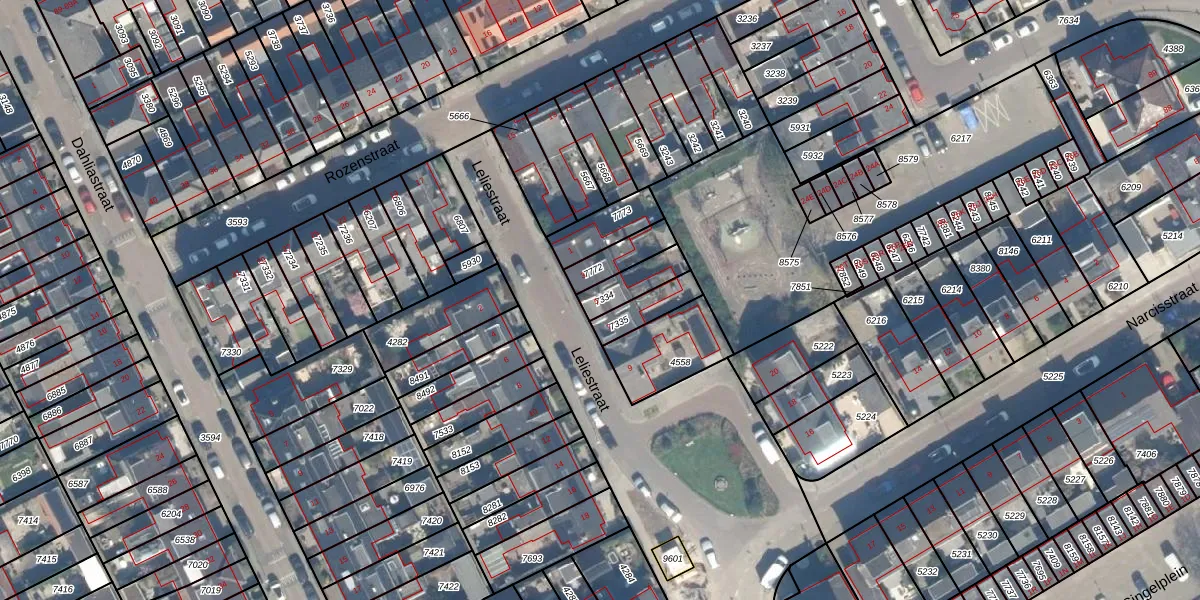 Gebruik de zoekbalk of klik op een perceel voor informatie over de adressen binnen dit perceel.