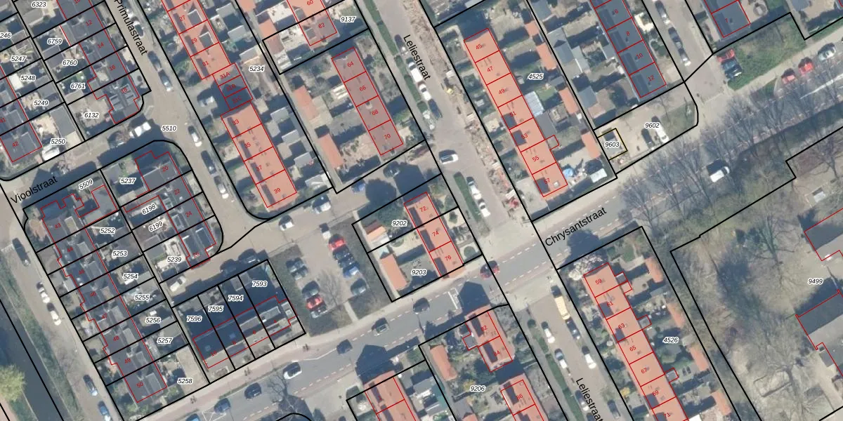 Leliestraat 72 is gelegen op kadastraal perceel WDN01B9202. Deze kadastrale aanduiding is uniek en wordt gebruikt door het Kadaster om eigendomsrechten en andere zakelijke rechten vast te leggen. Het perceel maakt onderdeel uit van de kadastrale gemeente Woerden.