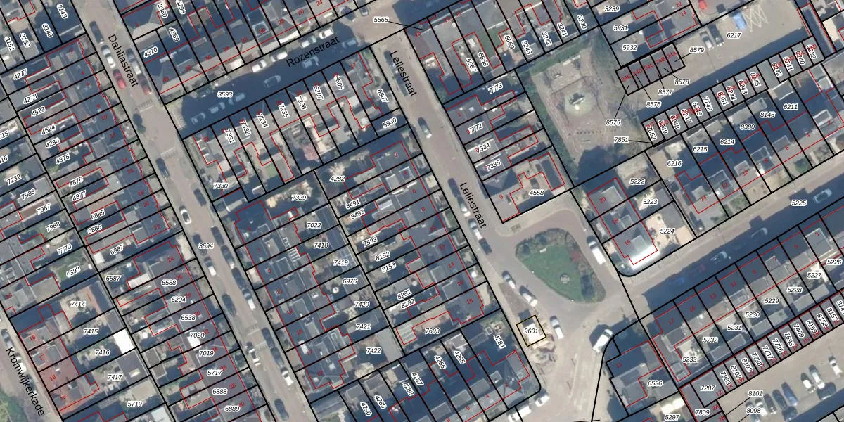 Leliestraat 8 is gelegen op kadastraal perceel WDN01B7533. Deze kadastrale aanduiding is uniek en wordt gebruikt door het Kadaster om eigendomsrechten en andere zakelijke rechten vast te leggen. Het perceel maakt onderdeel uit van de kadastrale gemeente Woerden.