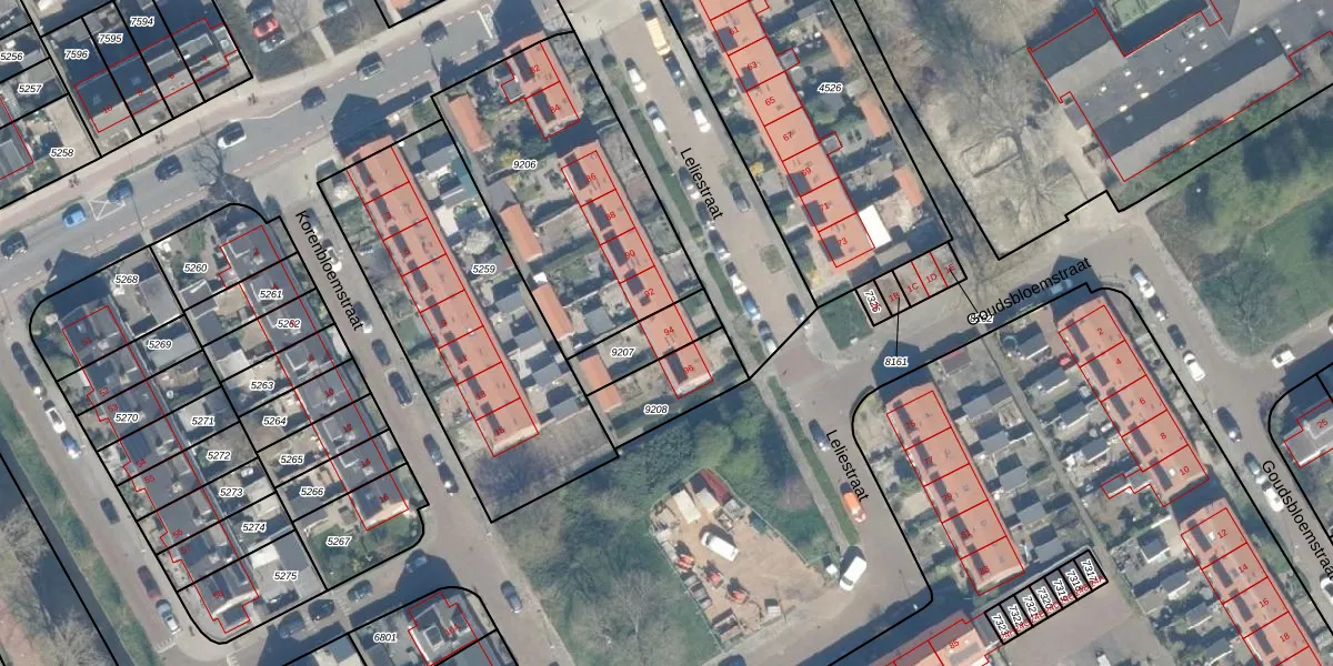 Leliestraat 94 is gelegen op kadastraal perceel WDN01B9207. Deze kadastrale aanduiding is uniek en wordt gebruikt door het Kadaster om eigendomsrechten en andere zakelijke rechten vast te leggen. Het perceel maakt onderdeel uit van de kadastrale gemeente Woerden.