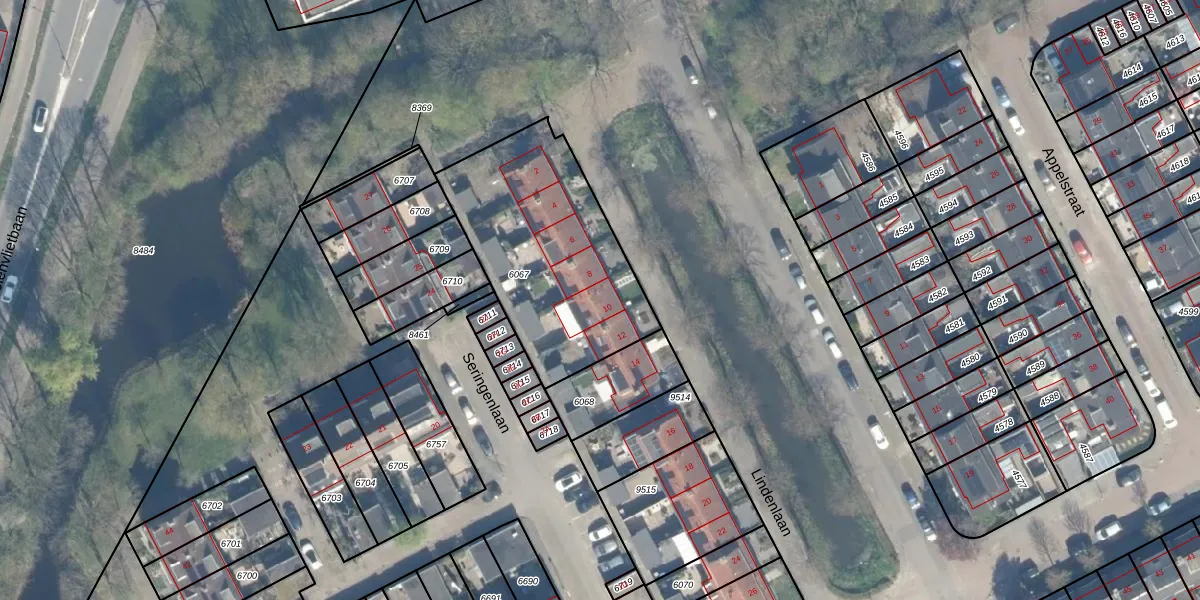 Lindenlaan 10 is gelegen op kadastraal perceel WDN01B6067. Deze kadastrale aanduiding is uniek en wordt gebruikt door het Kadaster om eigendomsrechten en andere zakelijke rechten vast te leggen. Het perceel maakt onderdeel uit van de kadastrale gemeente Woerden.