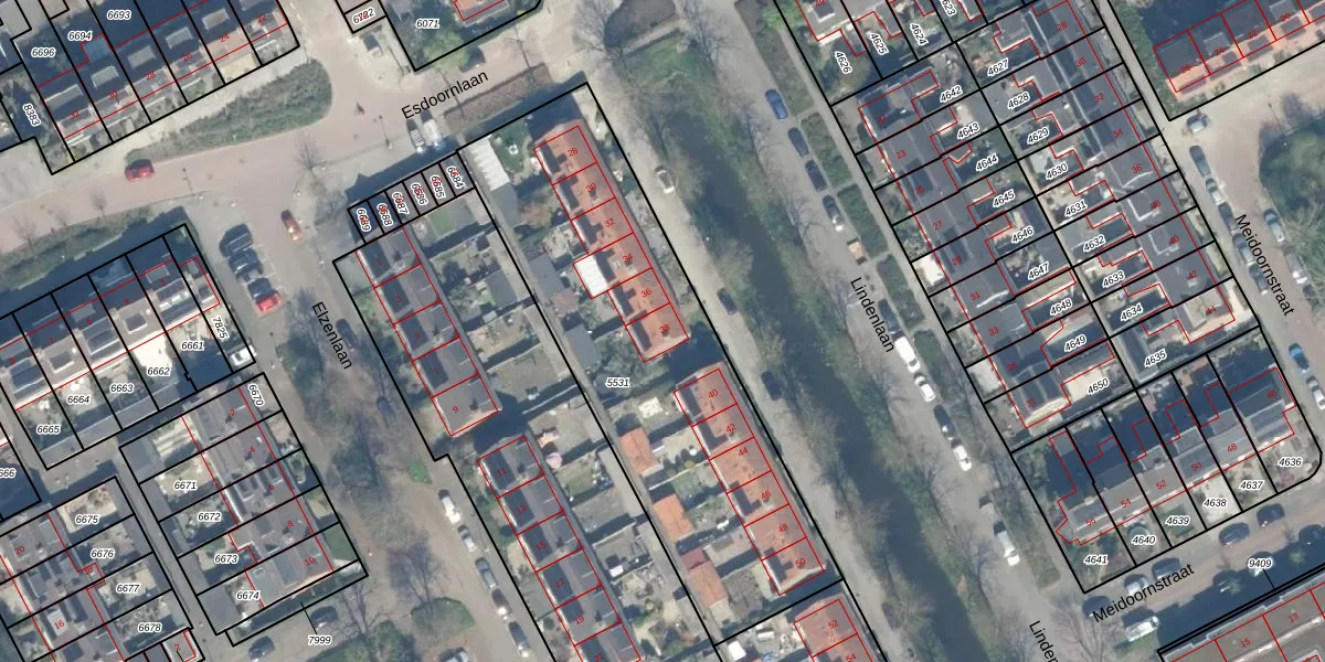 Lindenlaan 38 is gelegen op kadastraal perceel WDN01B5531. Deze kadastrale aanduiding is uniek en wordt gebruikt door het Kadaster om eigendomsrechten en andere zakelijke rechten vast te leggen. Het perceel maakt onderdeel uit van de kadastrale gemeente Woerden.
