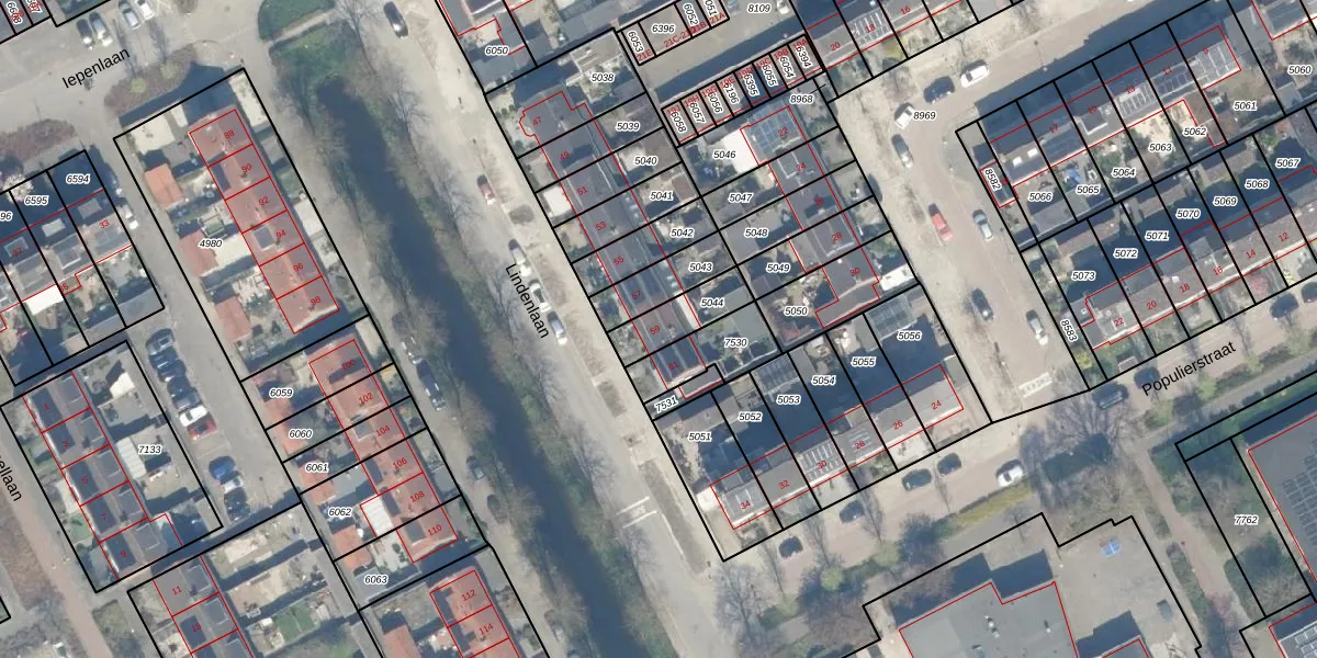 Gebruik de zoekbalk of klik op een perceel voor informatie over de adressen binnen dit perceel.