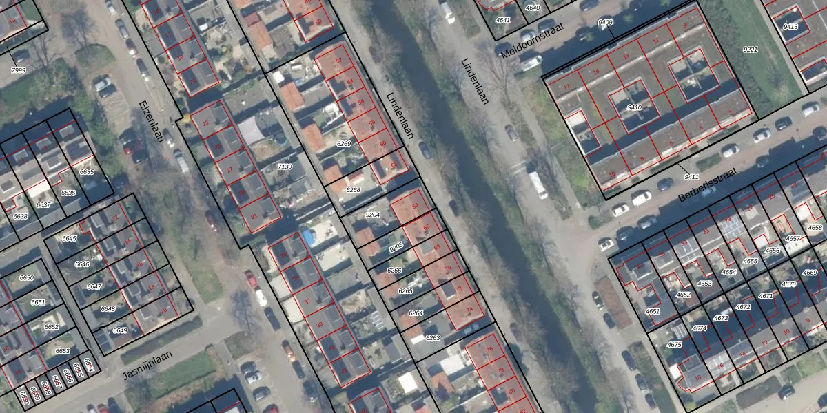 Lindenlaan 64 is gelegen op kadastraal perceel WDN01B9204. Deze kadastrale aanduiding is uniek en wordt gebruikt door het Kadaster om eigendomsrechten en andere zakelijke rechten vast te leggen. Het perceel maakt onderdeel uit van de kadastrale gemeente Woerden.
