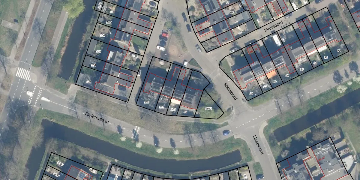 Het perceel waarop Maasoord 2 staat heeft een oppervlakte van 172 m². Dit is een middelgroot perceel. De perceeloppervlakte wordt geregistreerd door het Kadaster. Gedetailleerde informatie over de maten van dit perceel kunt u vinden in het rapport Kadastrale kaart met maatvoering van Maasoord 2.